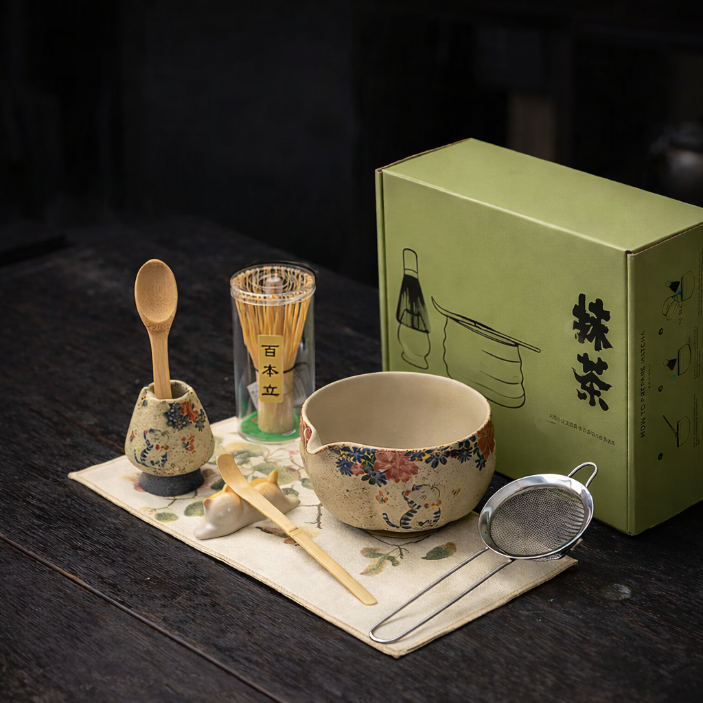 W środku znajdziesz wszystko, czego potrzeba, żeby przygotować matchę w spokojny, prosty sposób – bez szukania dodatkowych elementów.